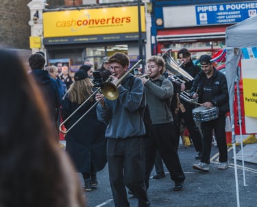 We’re a lively roaming brass band bringing energy and soul to every event, from weddings to festivals. We play lots of styles including New Orleans, Oom-Pah and all of your favourite pop classics.